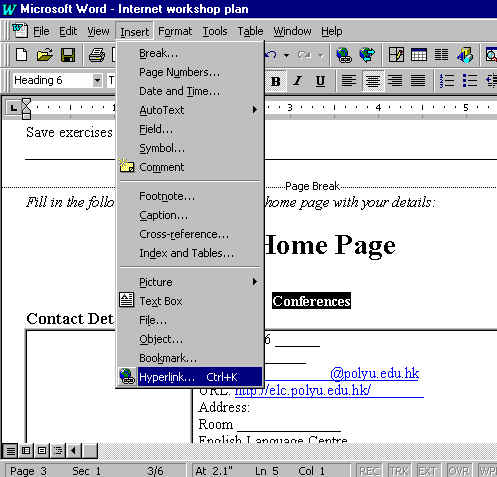 3.Go back to Word and highlight the words 'The Hong Kong Polytechnic University'. Either click the 'Insert Hyperlink' icon: