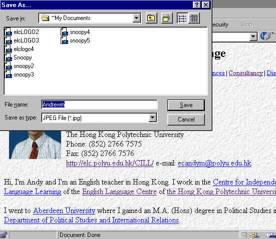 There are different types of home page you can have. For example, personal home pages with pictures of your cat, homepages for students to present a friendly image, and academic homepages to demonstrate your professionalism and to enhance the academic reputation of the ELC. This latter type of home page, the academic homepage, is what will be used in the workshop as a vehicle for practising hyperlinking and picture importing skills.