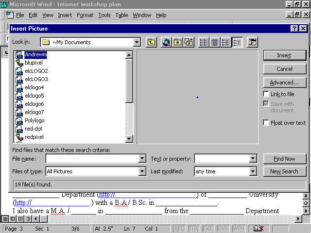 On this page: Aims | Homepages | External Hyperlinking | Internal Hyperlinking | Importing Pictures | Exercises | Putting things on the Internet