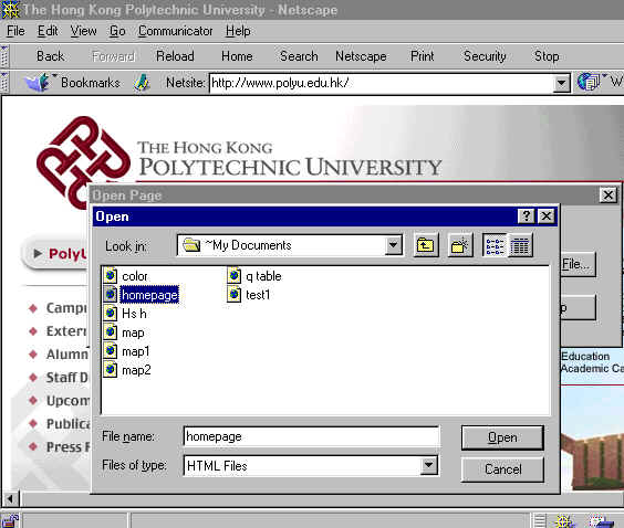 Try clicking the hyperlink to the HKPU homepage to see if it works. Afterwards, press the 'Back' button to see your homepage again.